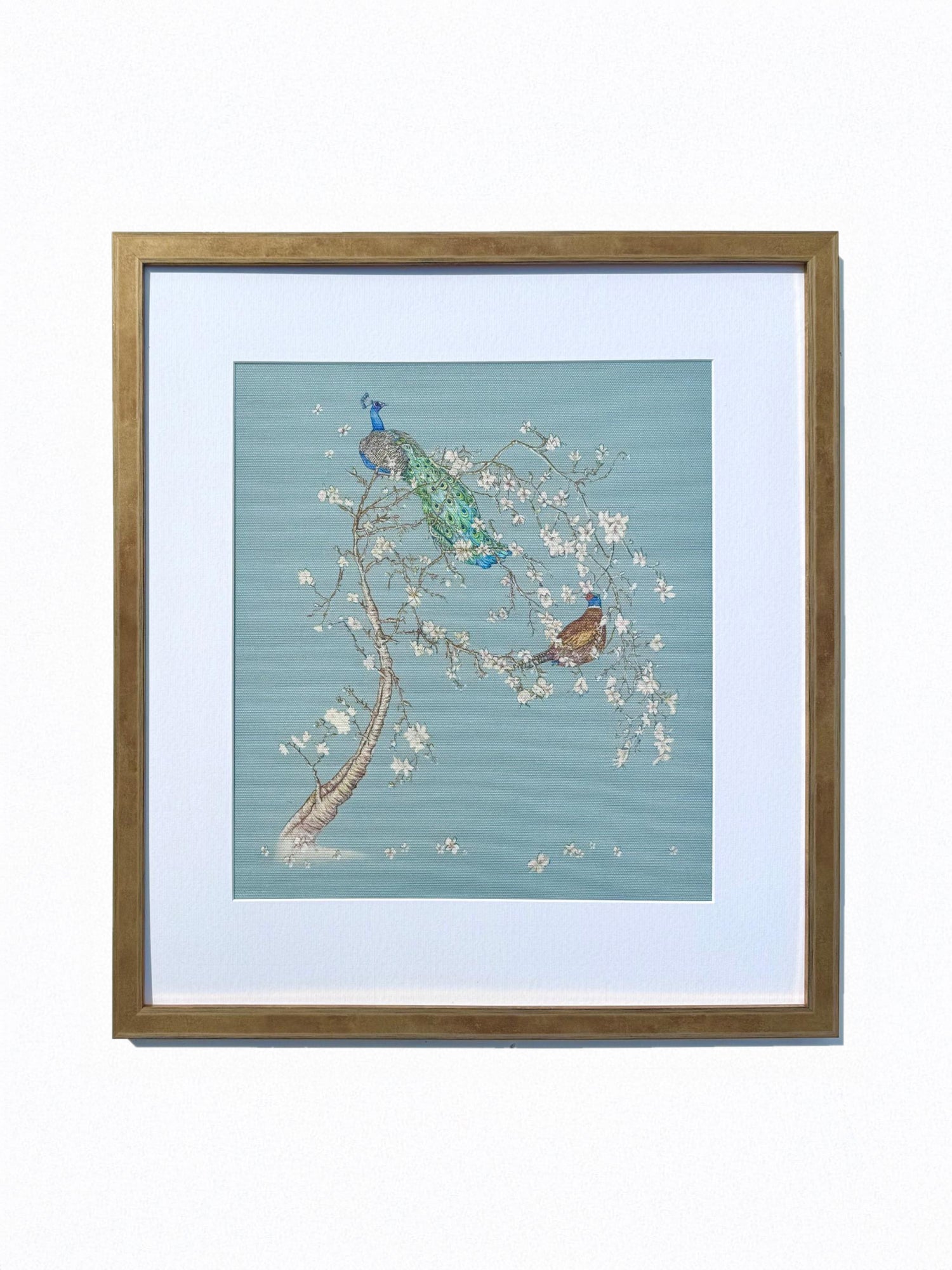 Indian Cherry Tree - Sky Blue - Fabric Print - Gold Frame